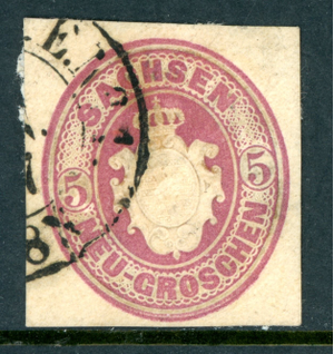 Germany States 1863 Saxony 5 sgr Lake Carmine Cut Square VFU K902