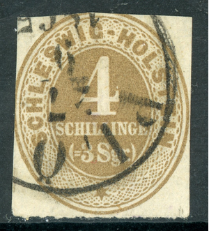 Germany States 1865 Schleswig-Holstein 4sgr Bister Scott #7 VFU R279