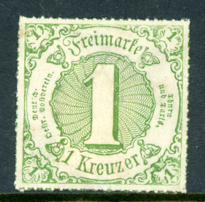 Germany States 1865 Thurn & Taxis South 1Kr Green Scott #56 Mint P237