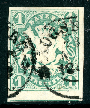 Germany States 1867 Bavaria 1Kr Blue Green Scott #15a VFU M435