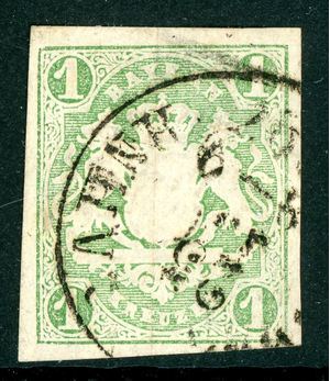 Germany States 1867 Bavaria 1Kr Yellow Green Scott #15 VFU M434