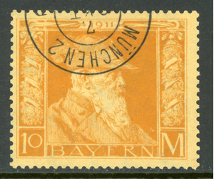 Germany States 1911 Bavaria 10 Mark Orange Scott #90 VFU F464