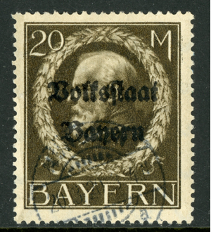 Germany States 1919 Bavaria 20 Mark Brown Scott #230 VFU F466