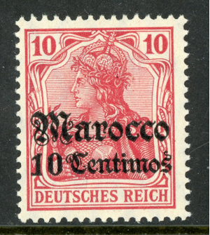 Morocco 1905 Germany 10ยข/10 pfg Carmine Sc #35 Watermarked MNH F633