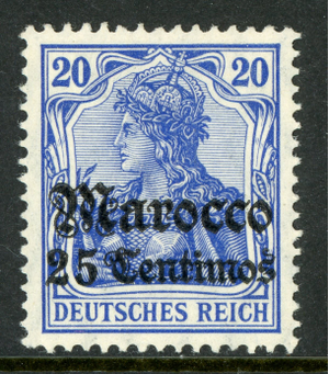 Morocco 1905 Germany 25ยข/25 pfg Blue Sc #36 Watermarked MNH F634