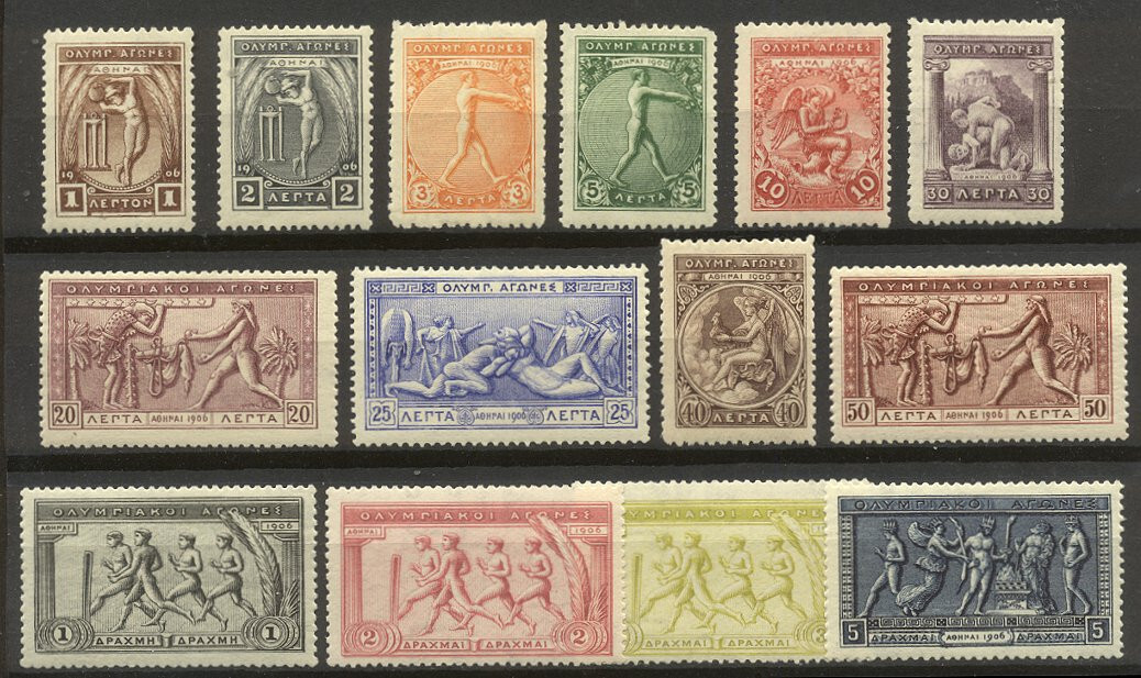 Scott #184-97: 1906 Olympics Set Centering & Condition: Mint. Fresh. Fine-Very Fine set. Reverse (Gum Side): Original gum. Never Hinged. Faults / Imperfections: None The item pictured is the actual item you are purchasing, unless otherwise noted. I also offer an interest-free layaway plan. Ask me about it!" All items will be mailed a day or two after payment is received. --------------------------------------------------------------------------------