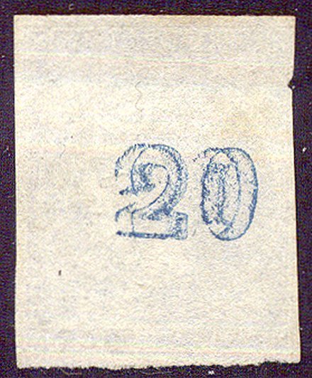 Scott #20e: 1862 20 l Blue w/ Double "20" Centering & Condition: Used. Fine-Very Fine. Reverse (Gum Side): N/A Faults / Imperfections: Tiny margin nick at upper left The item pictured is the actual item you are purchasing, unless otherwise noted. I also offer an interest-free layaway plan. Ask me about it!" All items purchased will be mailed a day or two after payment is received. -------------------------------------------------------------------------------- Please click any of the following to read: | |
