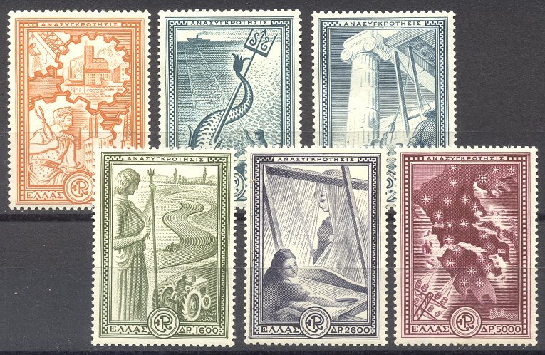 Scott #539-44: 1951 Marshall Plan Set Centering & Condition: Mint. Fine set. Reverse (Gum Side): Original gum. Never Hinged. Faults / Imperfections: None The item pictured is the actual item you are purchasing, unless otherwise noted. I also offer an interest-free layaway plan. Ask me about it!" All items will be mailed a day or two after payment is received. --------------------------------------------------------------------------------