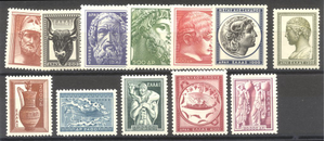 Scott #556-67: 1954 Artifacts Set Centering & Condition: Mint. Fresh. Fine-Very Fine set. Reverse (Gum Side): Original gum. Never Hinged. Faults / Imperfections: None The item pictured is the actual item you are purchasing, unless otherwise noted. I also offer an interest-free layaway plan. Ask me about it!" All items will be mailed a day or two after payment is received. -------------------------------------------------------------------------------- Please click any of the following to read: |
