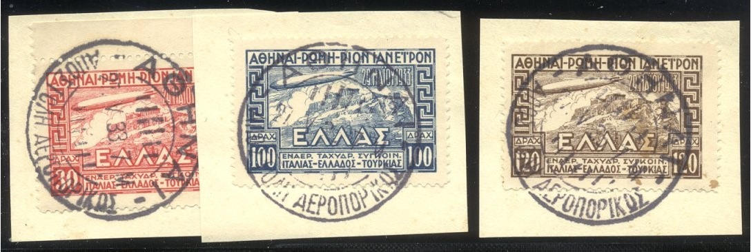 Scott #C5-7: 1933 Graf Zeppelin Set Centering & Condition: Used. Very Fine set - each tied to similar piece Reverse (Gum Side): N/A Faults / Imperfections: None The item pictured is the actual item you are purchasing, unless otherwise noted. I also offer an interest-free layaway plan. Ask me about it!" All items will be mailed a day or two after payment is received. ![]() ![]() ![]() --------------------------------------------------------------------------------