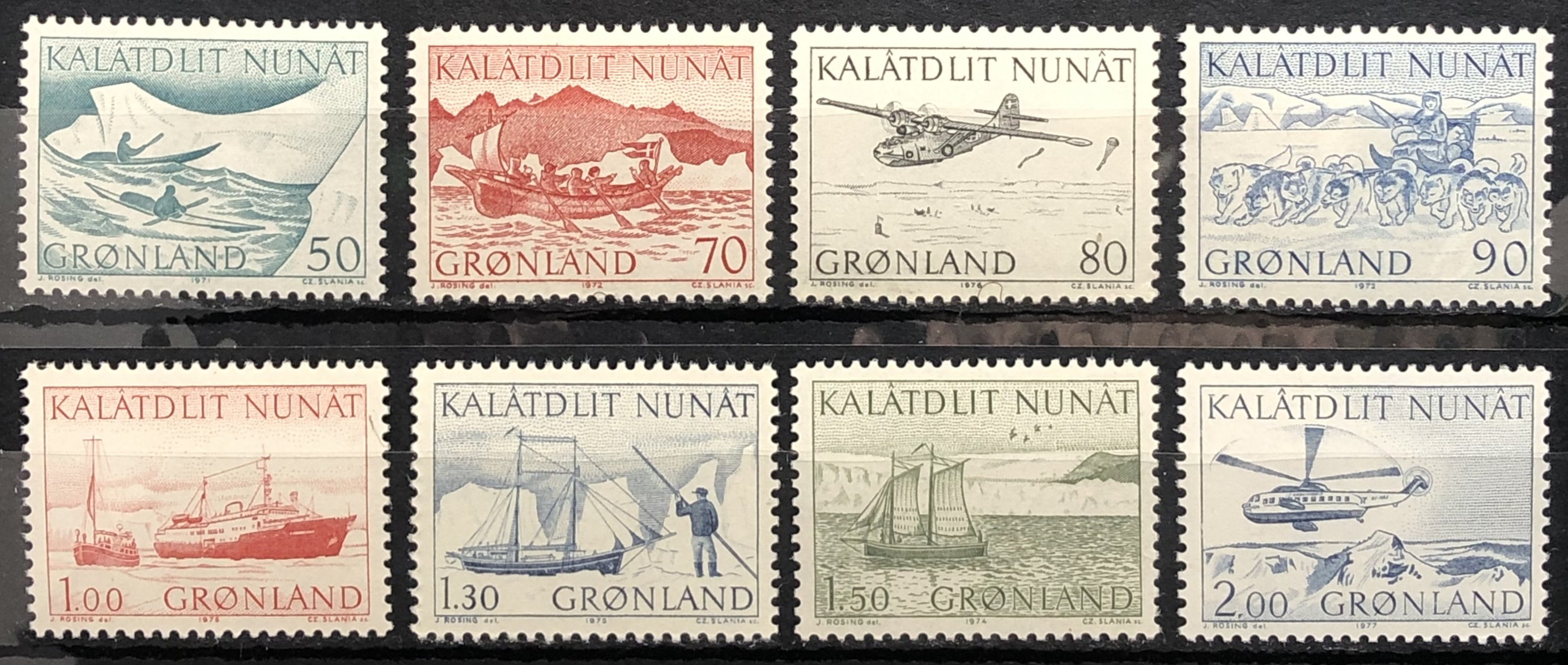 Mail-carrying transports, 1971-77. Complete set of 8.