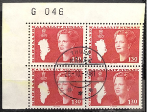 Queen Margrethe, Map of Greenland, 1980-89. Block of 4.