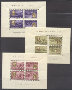 Scott #B198A//CB1C : 1947 Roosevelt Sheets Centering & Condition: Mint. Fresh. Very Fine group of (6) of the (8) sheets Reverse (Gum Side): Original gum. Never Hinged. Faults / Imperfections: Couple minor blemishes The item pictured is the actual item you are purchasing, unless otherwise noted. I also offer an interest-free layaway plan. Ask me about it!" All items will be mailed a day or two after payment is received. --------------------------------------------------------------------------------
