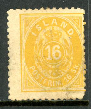 Iceland 1873 - 16sk Yellow Perf 12½ Scott #7 Unused I623