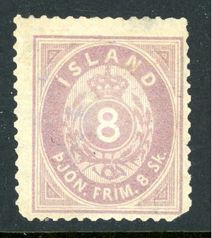 Iceland 1873 Numeral Official 8 Skilling Red Lilac Scott # O2 Mint T824