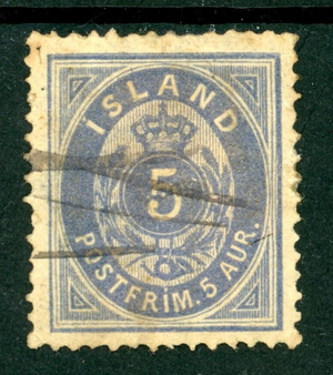 Iceland 1876 Numeral 5 Aur Blue Scott # 9 VFU M81