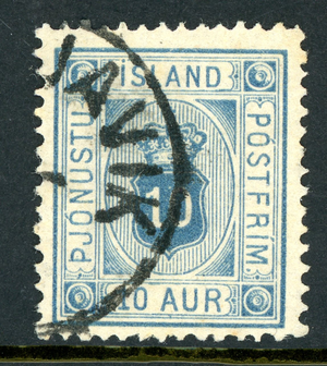 Iceland 1876 Official 10 Aur Blue *Perf 14x13½* Scott #O6 VFU T847