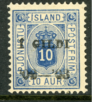 Iceland 1876 Official 10 Aur Ultra "03-'03" Scott #O23c Mint B245