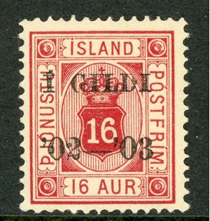 Iceland 1876 Official 16 Aur Carmine Perf 14x13½ Scott #O28 Mint B247