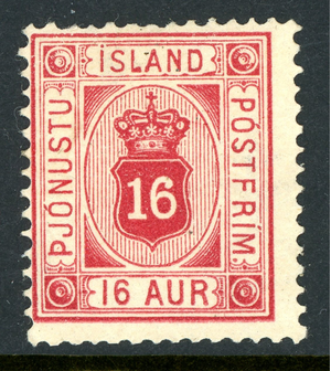 Iceland 1876 Official 16 Aur Carmine *Perf 14x13½* Scott #O7 Mint T834