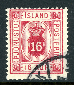 Iceland 1876 Official 16 Aur Carmine *Perf 14x13½* Scott #O7 VFU T848