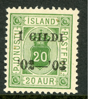Iceland 1876 Official 20 Aur Yellow Green cott #O24 Mint B246