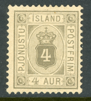 Iceland 1876 Official 4 Aur Gray Perf 13 Scott #O13 Mint B240