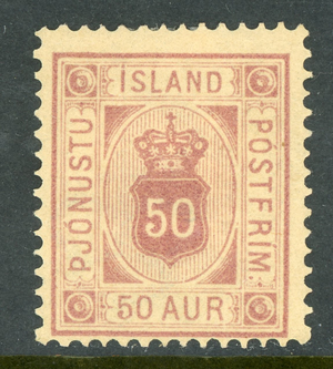 Iceland 1876 Official 50 Aur Rose Lilac Perf 14x13½ Scott #O9 Mint B239