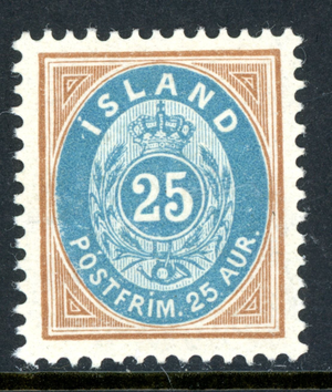 Iceland 1900 - 25a Yellow Brown & Blue Perf 13 Scott #29 Mint I635