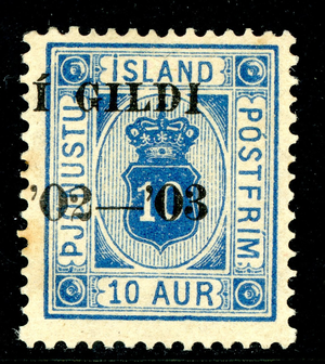 Iceland 1902 Official 1 Gildi/10 Aur Blue *Perf 14x13½* Scott #O27 Mint T869