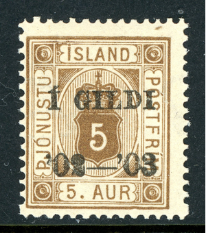 Iceland 1902 Official 1 Gildi/5 Aur Brown *Perf 14x13½* Scott #O26 Mint T864