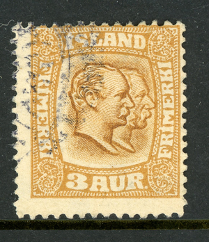 Iceland 1907 Christian X 3 Aur Yellow Brown &Ocher Scott # 72 VFU D57