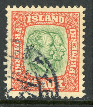 Iceland 1907 Double Heads 15 aur Red & Green Scott # 77 VFU C886