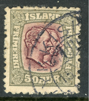 Iceland 1907 Double Heads 50 aur Gray & Violet Scott # 82 VFU C919
