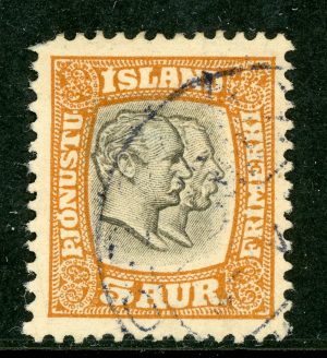 Iceland 1907 Two Kings Official 5a Brn Org & Gray Perf 13 Scott # O33 VFU D562
