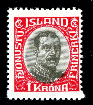 Iceland 1920 Official 1 Kronor Carmine & Gray Scott # O47 Mint T884
