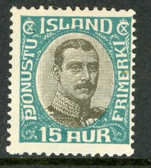 Iceland 1920 Official 15a Light Blue & Gray Scott O44 MNH B259
