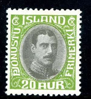 Iceland 1920 Official 20 Aur Yellow Green & Gray Scott # O45 Mint T886