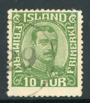 Iceland 1921 Christian X 10a Green Scott 116 VFU D236