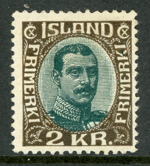 Iceland 1921 Official 2 Kronor Olive Brown & Myrtle Green Scott O127 Mint B255