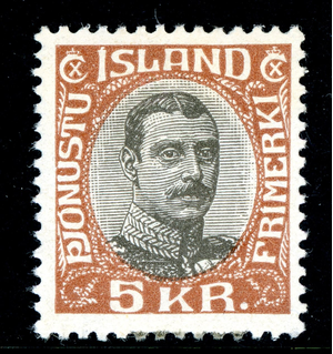 Iceland 1930 Official 5 Kronor Brown & Black Scott # O49 Mint T893