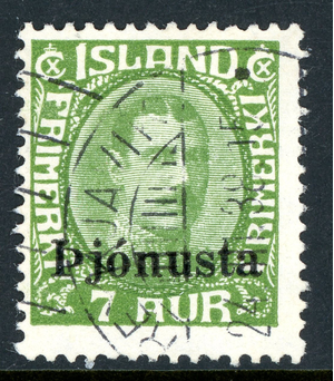 Iceland 1931 Official 7 Aurar Green Scott # O7 VFU T802