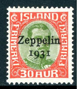 Iceland 1931 Zeppelin 30 aur Red & Green Scott #C9 Mint N220