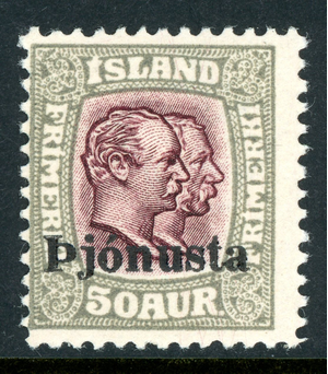 Iceland 1936 Official 50 Aurar Two Kings Scott # O69 Mint T804