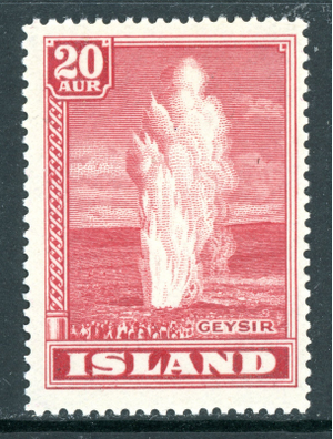 Iceland 1938 Geyser 20 aur Rose Red Scott #204 Mint N814