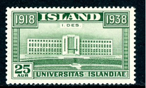 Iceland 1938 Independence Anniversary 25 aur Green Scott #209 Mint N822