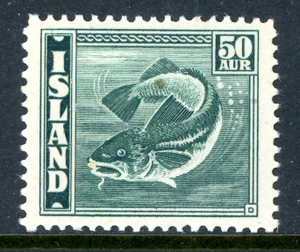 Iceland 1943 Fish 50a Blue Green Scott #227 Mint Non Hinged T13