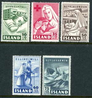 Iceland 1949 Semipostals Scott #B7-B11 Mint Non Hinged T33