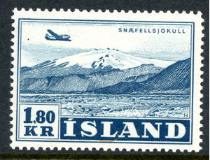Iceland 1952 Airmail 1.80 Kr Slate Blue Scott #C27 Mint Non Hinged S987