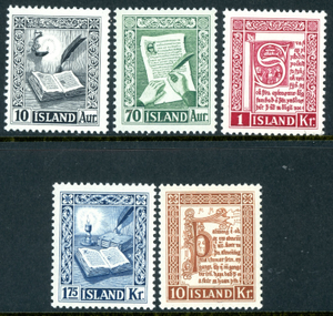 Iceland 1953 Manuscripts Set Scott #278-82 Mint Non Hinged T26